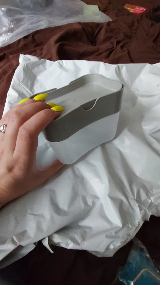 INSTANT 2-IN1 DISPENSER + Caddy, 1 HAND OPERATION, COMPACT ORGANIZATION: Sink dispenser with attached caddy holds sponges, scrubbers, rags, scouring pads in one convenient place while keeping water off of kitchen counters.